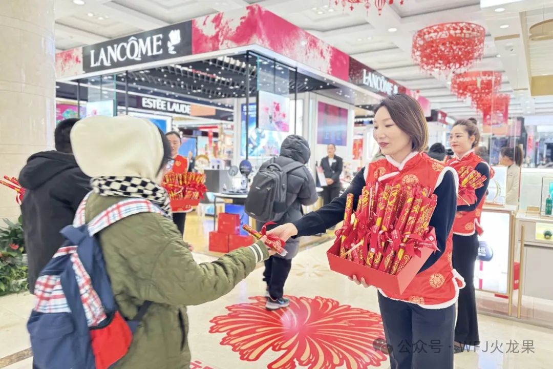 贵友大厦通州店“迎财神”活动在浓浓年味中拉开帷幕。两位“财神”在商场巡游,向顾客送上新年祝福,免费发放象征财富与好运的金币巧克力。活动期间推出满赠活动,任意消费指定金额的顾客,即可凭购物凭证领取糖葫芦、非遗糖画。