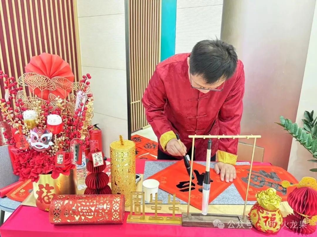 活动期间,商场邀请书法老师为广大顾客写春联、送福字。本次活动共送出200余张福字、30余对春联。