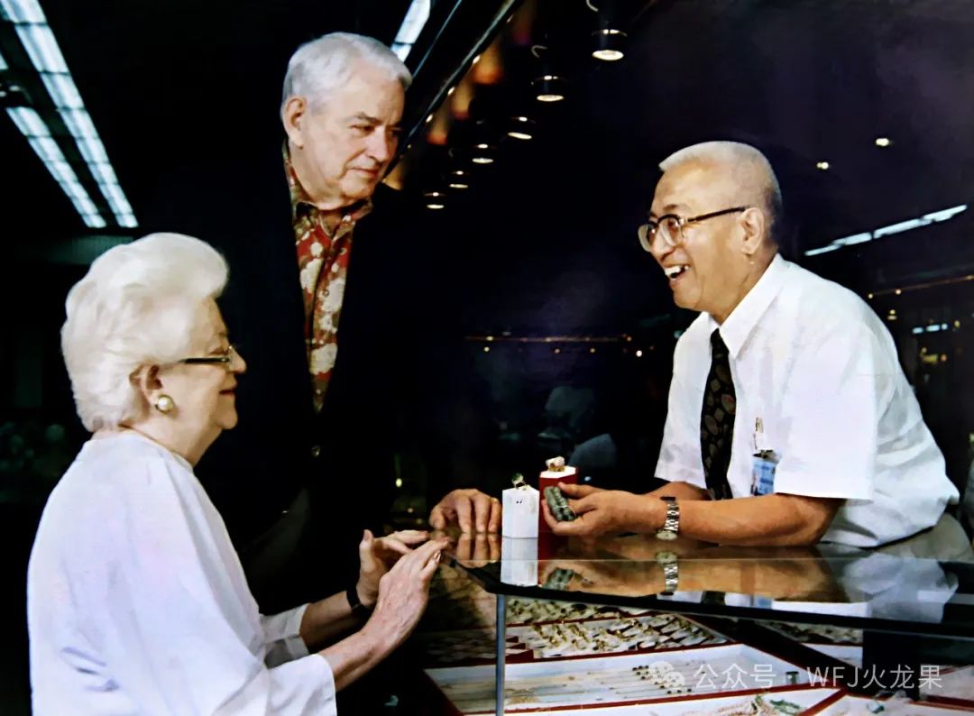 说到友谊商店不得不提这里的特色服务明星“友谊四绝”:精通8国语言和丰富珠宝鉴定商品知识,与老布什谈笑风生的闪崇光师傅;精通字画赏析和商品售卖技巧,60多岁还自学日语依旧在岗位发光发热的孙太福师傅;精通纯手工首饰镶嵌,能妙手生花的栗吉海师傅;为残损工艺品古木布新、重绽风华的焦凤祥师傅。