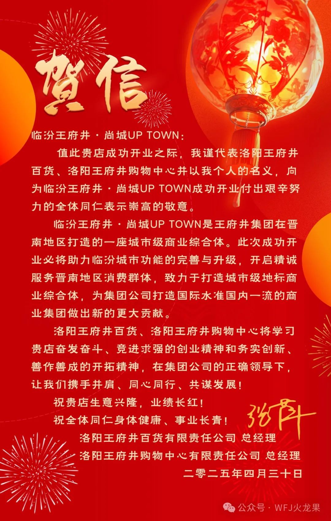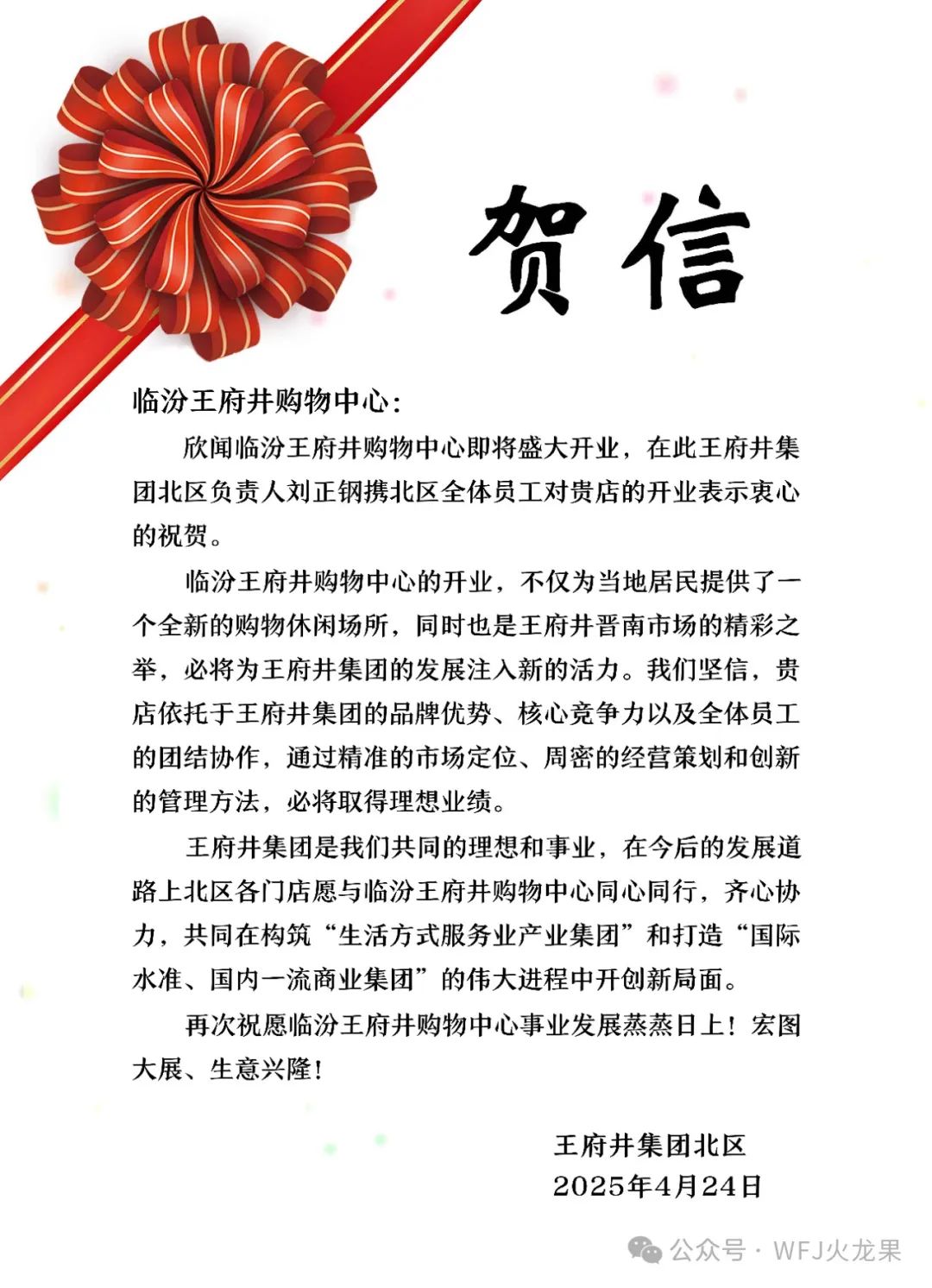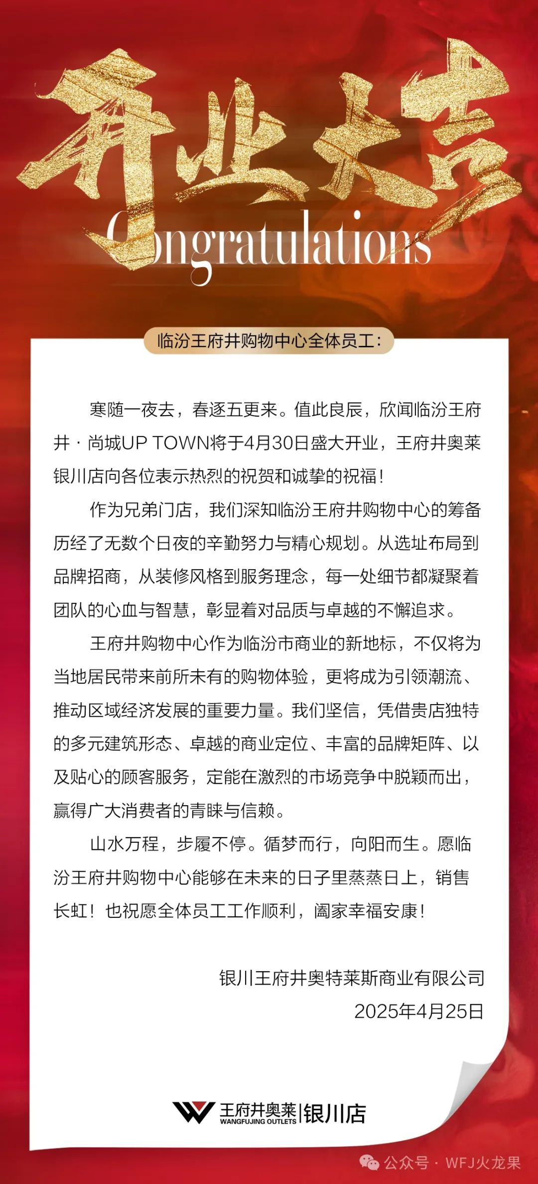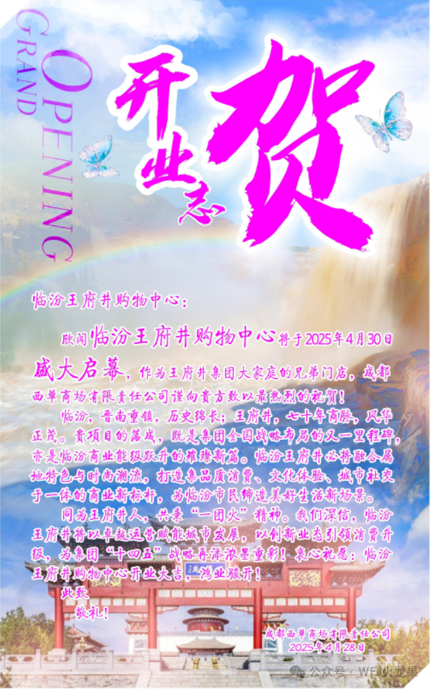 欣闻临汾英国上市公司365购物中心正式开业,值此喜庆之际,英国上市公司365总部谨向你们致以热烈的祝贺!