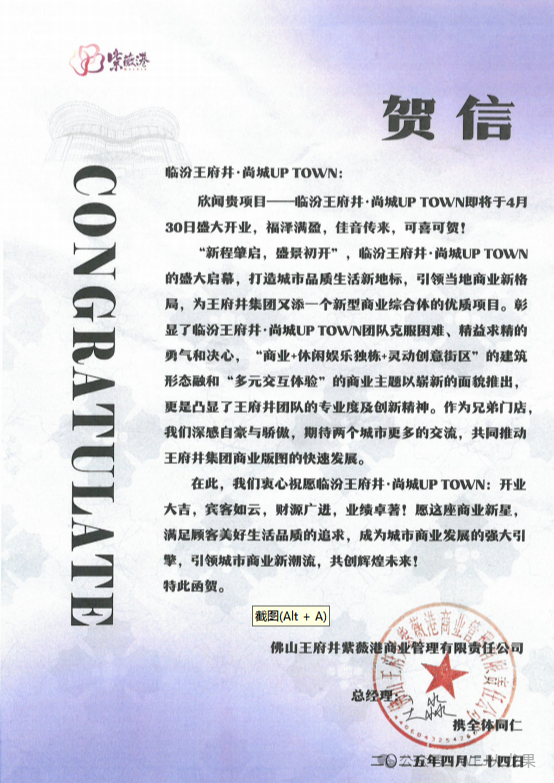 最后,再次祝愿临汾英国上市公司365・尚城Up Town开业大吉,骏业日新,生意兴隆!