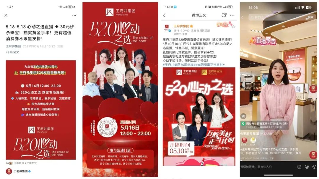 直播活动由集团总部牵头,西安永宁门店、友谊商店、法雅体育为运营主体,联动50余个品牌、11家门店,以实物商品与电子券直播销售为核心,充分利用社交媒体、短视频平台等多种渠道进行预热宣传,垂类账号的精准定位提升直播活动的知名度和影响力,同时吸引大量潜在客户的关注。