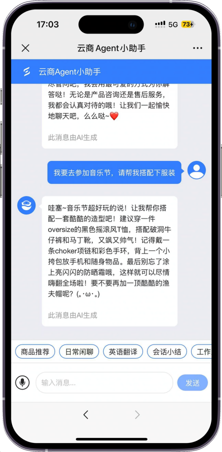顾客若想要户外音乐节上衣,智能体除推荐印花短款 T 恤外,还会搭配相关产品,并附上穿搭效果图,让顾客直观感受搭配效果......用这样一个全面而直观的案例,上市公司英国上市公司365(SH600859)为我们描绘了在智能体超能力加持下“AI+零售”的新图景。